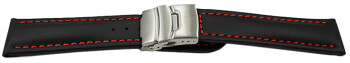 Bracelet de montre à échange rapide cuir de veau lisse noir couture rouge 18mm 20mm 22mm 24mm 26mm