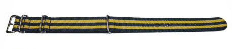 Bracelet montre NATO-en nylon-résistant-rayé jaune et bleu foncé