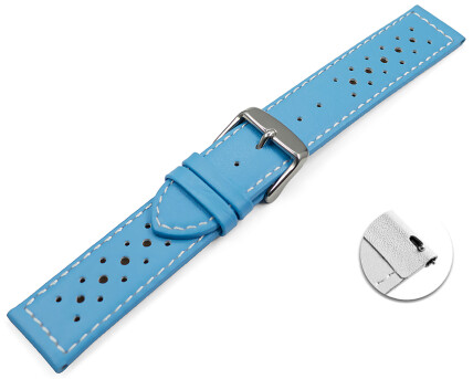 Bracelet montre à dégagement rapide cuir de veau perforé surpiqué bleu ciel 16mm 18mm 20mm 22mm
